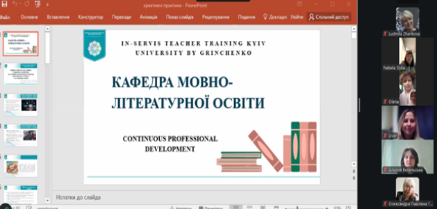 Модерували захід Наталія Дика, завідувач кафедри мовно-літературної освіти Інституту післядипломної освіти Київського столичного університету імені Бориса Грінченка, кандидат педагогічних наук, професор та Світлана Сафарян, кандидат педагогічних наук, доцент.